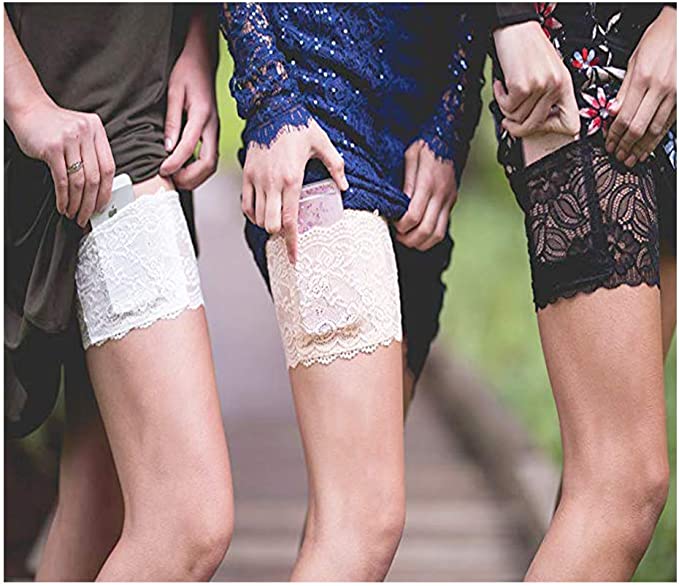 - Thigh Garter - Elastic lace material made of nylon with 4 small pockets, sexy and invisible. Hand wash cold, mild detergent only, hang dry.