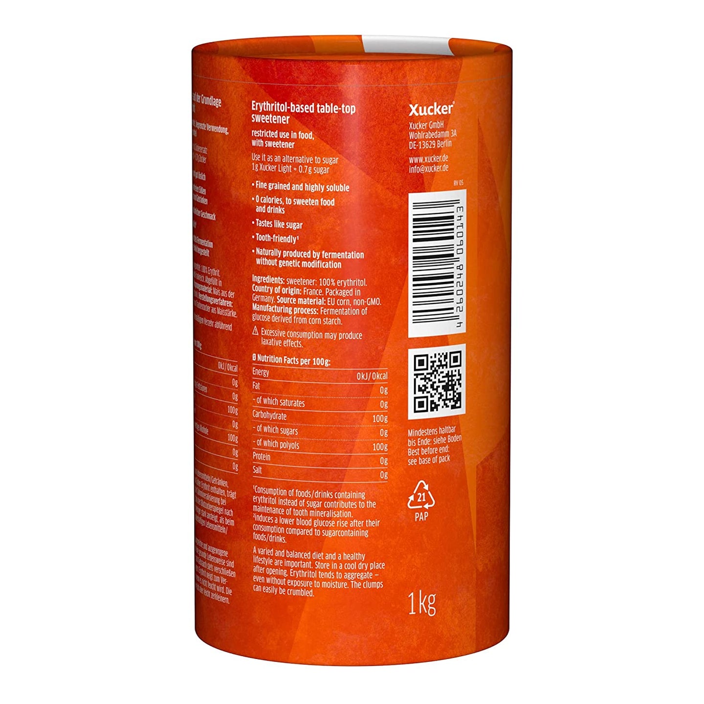 Xucker Light is the ideal sweetener as part of a calorie-conscious diet. Erythritol crystals look similar to sugar or xylitol. Erythritol is easily soluble and best tolerated of all sugar alcohols because it is excreted almost completely unchanged.