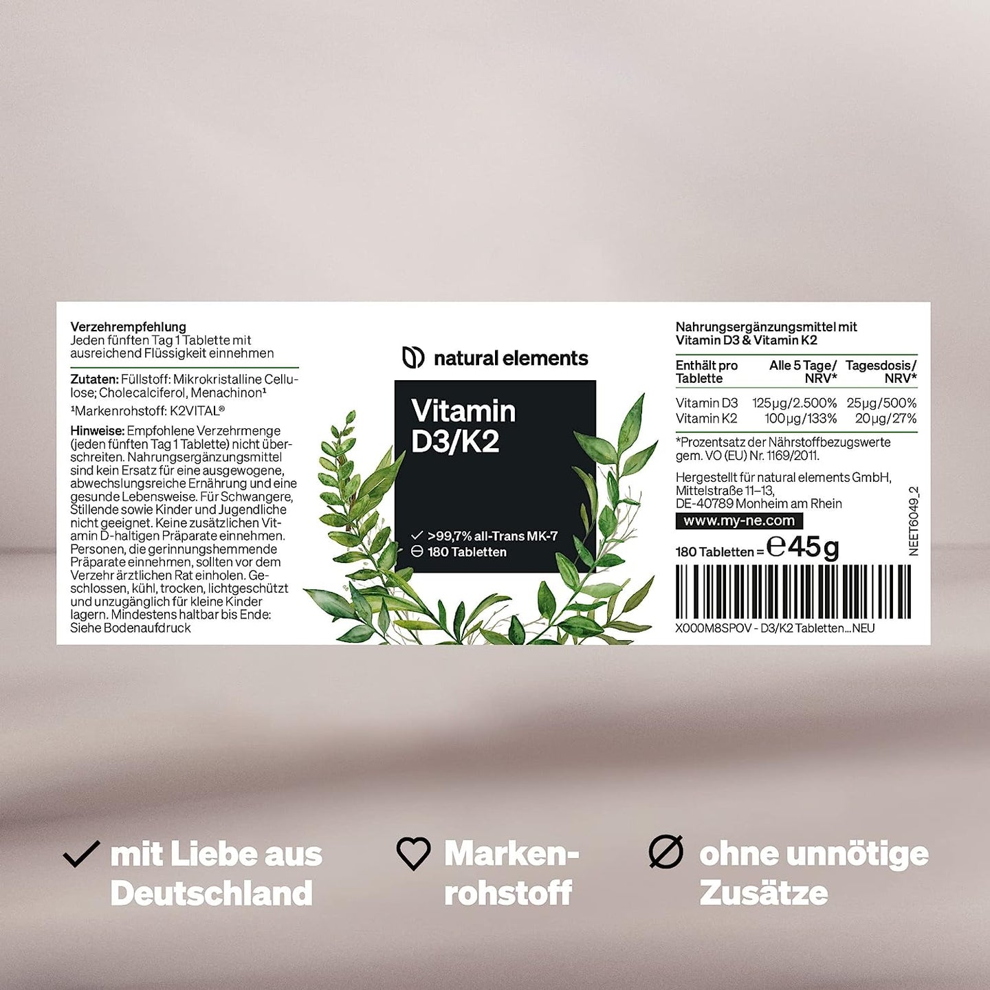 Vitamin D3 + K2 Depot, 180 Tablets - High Dose 5,000 IU D3 + 100μg K2 MK-7