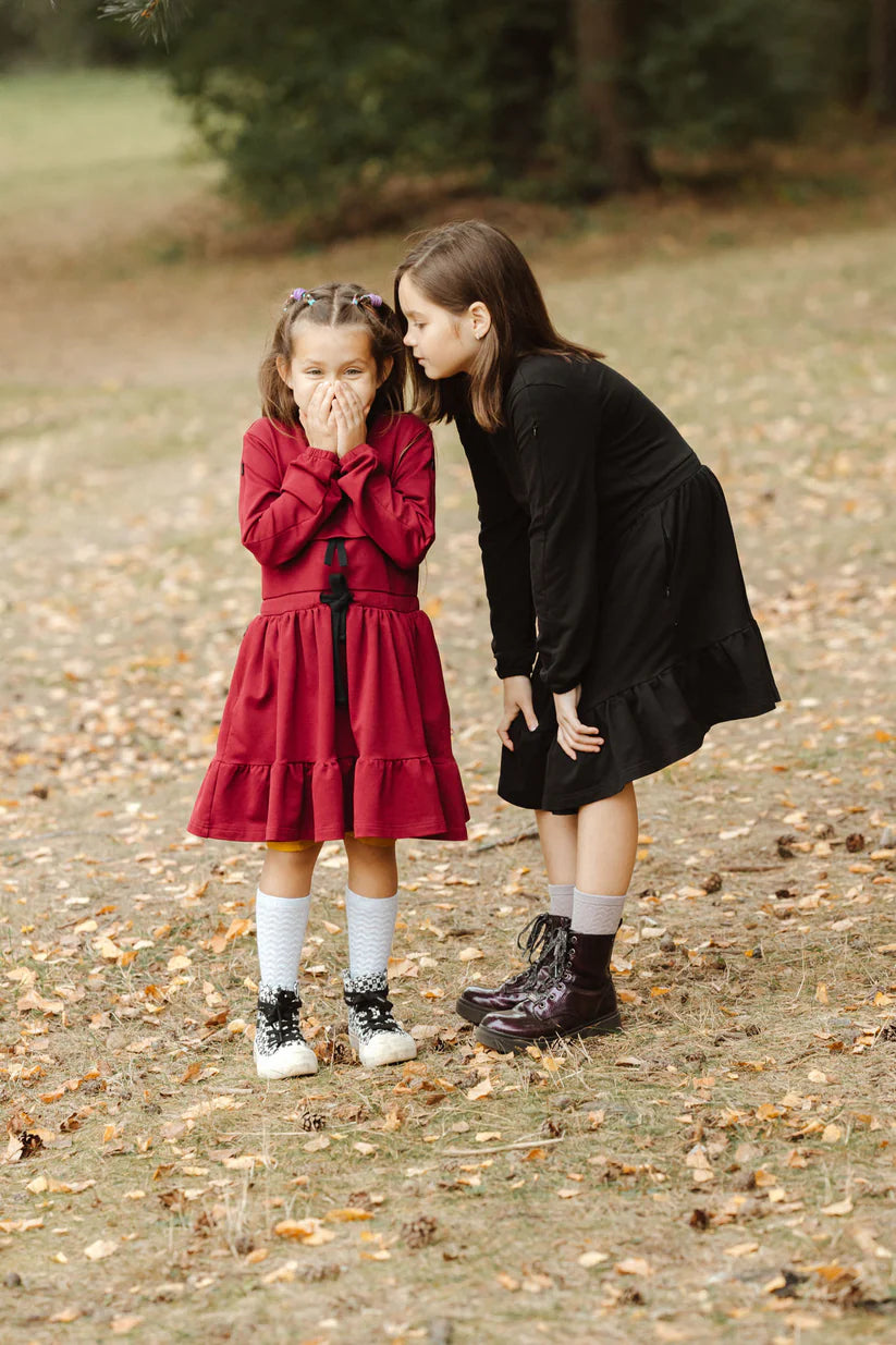 Vi præsenterer den charmerende 'BARBORA Bordo'-kjole, en smukt designet A-line snoet kjole til piger i alderen 5-12. Denne kjole er den perfekte kombination af elegance og funktionalitet, med en rig bordo-farve, der tilføjer et legende, men sofistikeret touch til enhver lejlighed. Den unikke tilføjelse af en bred dobbeltsidet frontlomme med to lynlåse giver mulighed for diskret opbevaring af småting eller væsentlige ting. For ekstra bekvemmelighed er to sidelommer sømløst integreret i designet for nem adgang, hvilket gør denne kjole til et ideelt valg for unge eventyrere. Lavet af blødt, åndbart bomuld og stylet med lange ærmer og en afslappet butterfly-detalje, er 'BARBORA Bordo'-kjolen alsidig nok til legeaftaler, skole eller særlige begivenheder. Det er ikke bare et stykke tøj; det er en måde for piger at omfavne deres individualitet og håndtere deres behov med selvtillid og stil. Lad 'BARBORA Bordo'-kjolen være et fyrtårn af glæde og uafhængighed i din lilles garderobe.