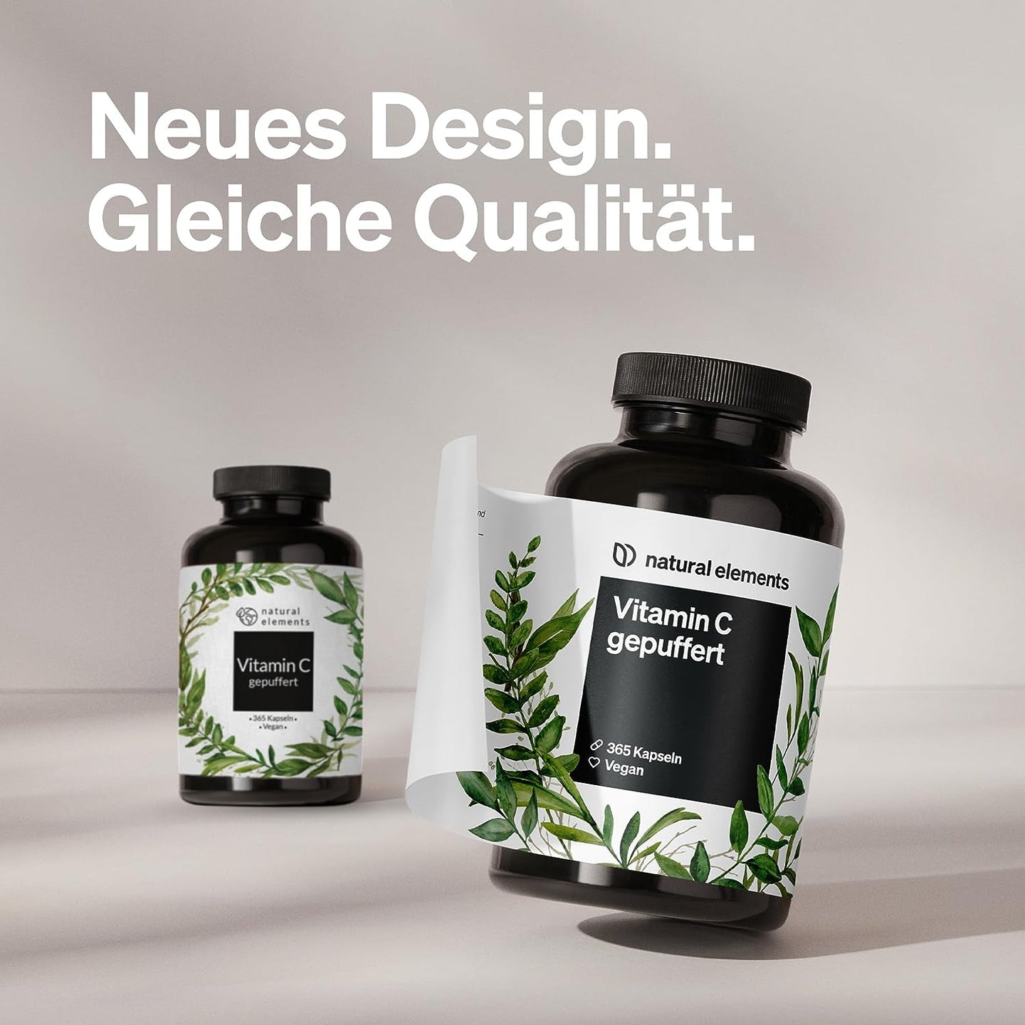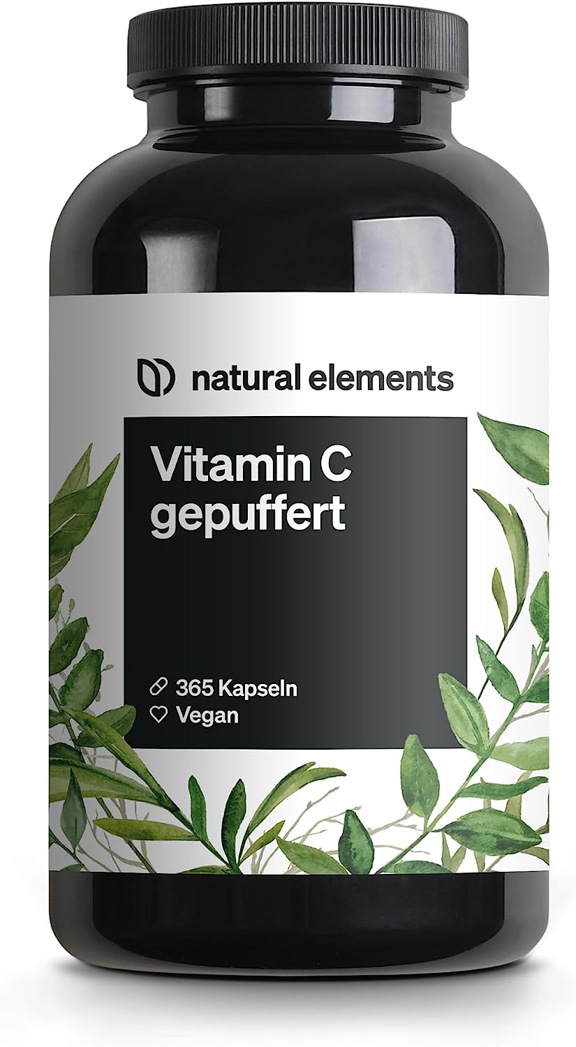 Natural Elements Bufret Vitamin C 500mg: Skånsom, vegansk, 365 kapsler - fremstillet i Tyskland