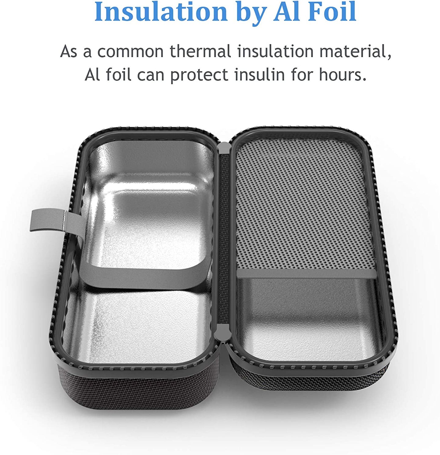 - The inner wall is added with aluminium foil, which has an excellent thermal insulation effect. It can effectively extend the duration of protection for insulin.