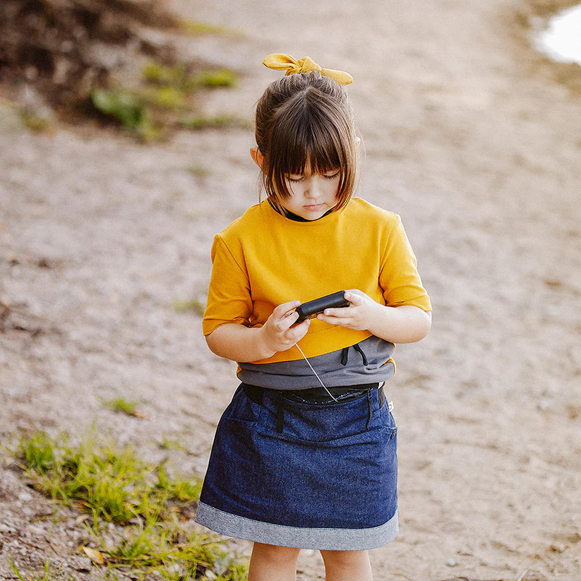 Fusta din denim pentru fete T1D-Friendly cu buzunare - 100% bumbac certificat GOTS, stil atemporal