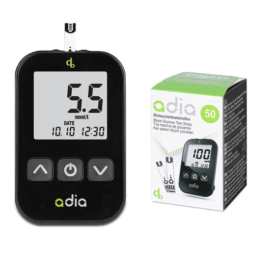 Gestionați-vă diabetul mai eficient cu sistemul de monitorizare a glicemiei pentru diabetici Adia. Acest kit cuprinzător, care include 10 benzi de testare, oferă o soluție accesibilă și fiabilă pentru monitorizarea zilnică a zahărului din sânge. Caracteristici...Preț obișnuit De la 161,00 kr -