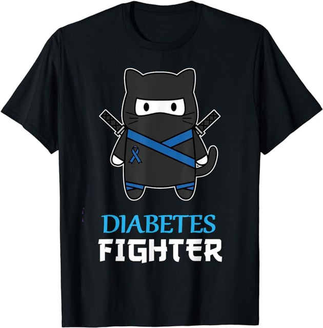 Tricou pisică Ninja pentru luptătorul diabetului | Conștientizarea diabetului de tip 1 | Tricou Rainbow & Blue Band